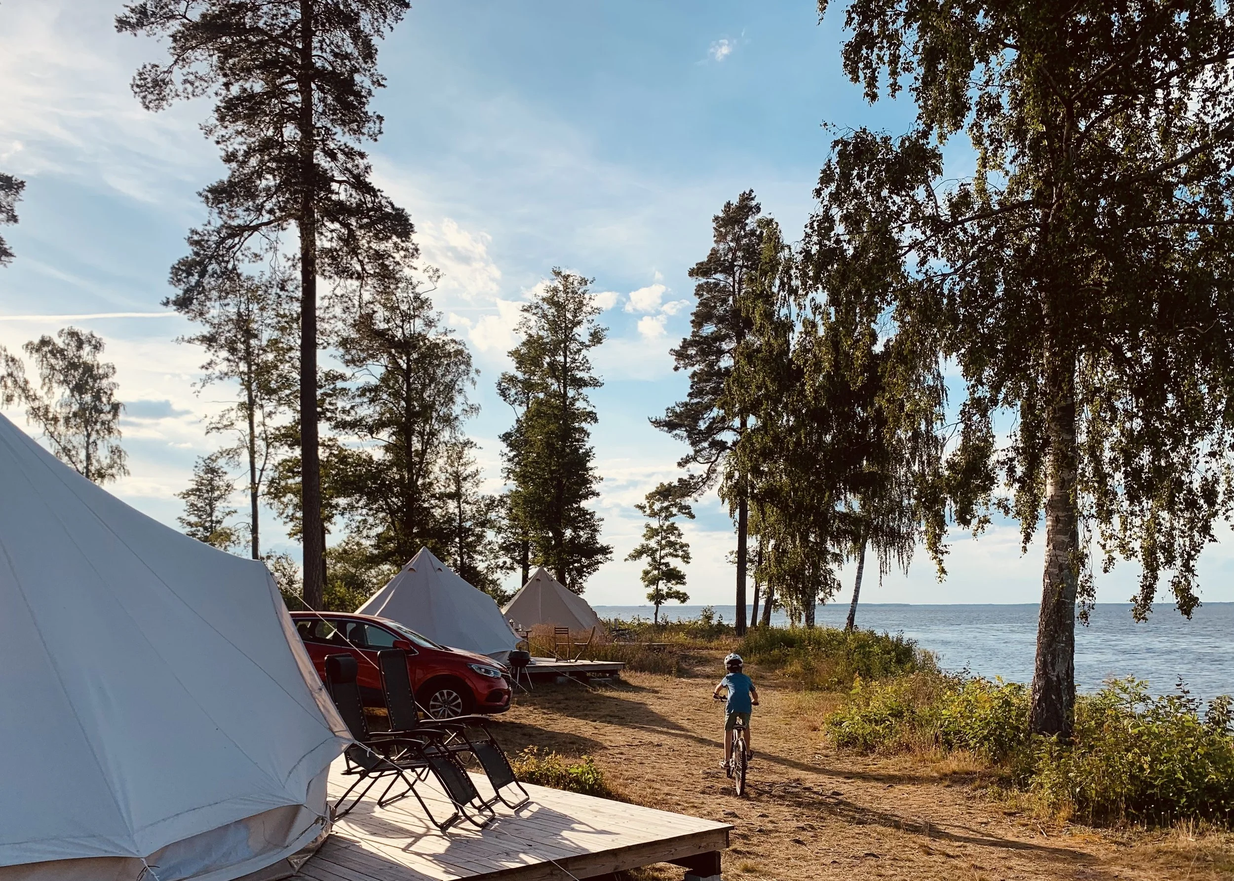 Vi har campingplatser för husvagn, husbil och tält. En del platser ligger bara några meter från vattnet, men alla har sjöutsikt!